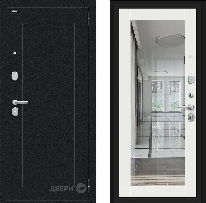 Входная металлическая Дверь Bravo Флэш Букле черное/Off-white в Ногинск 860х2050 мм