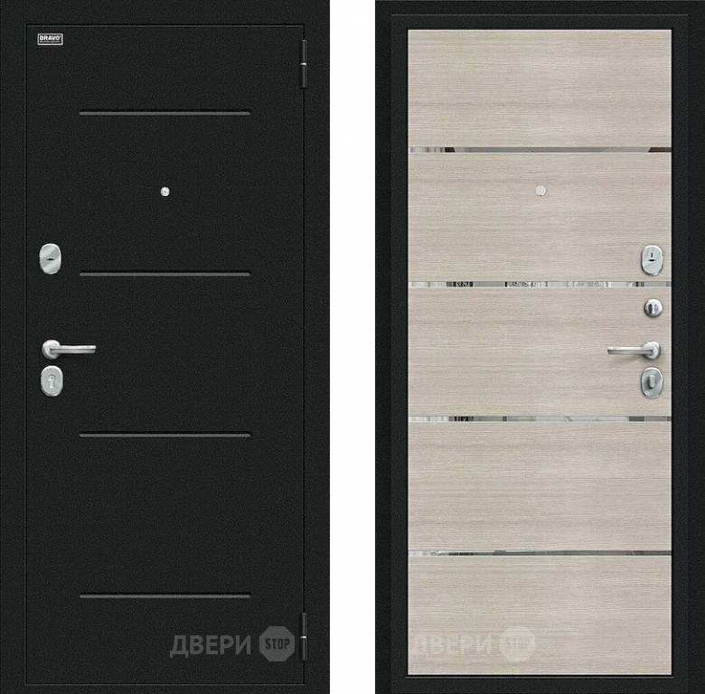 Входная металлическая Дверь Bravo Лайн Букле черное/Cappuccino Veralinga в Ногинск 860х2050 мм