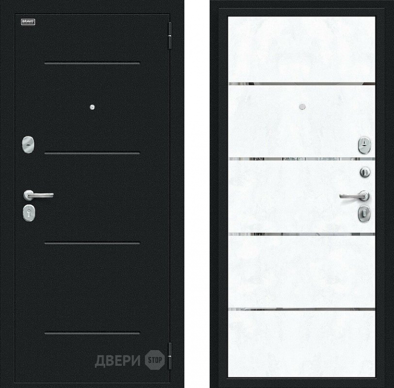 Входная металлическая Дверь Bravo Лайн Букле черное/Snow Art в Ногинск 860х2050 мм
