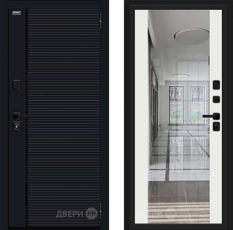 Входная металлическая Дверь Bravo Лайнер-3 Total Black/Off-white в Ногинск 860х2050 мм
