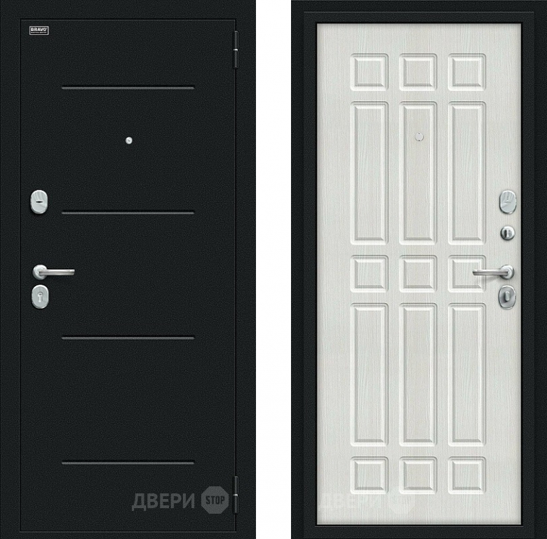 Входная металлическая Дверь Bravo Мило Букле черное/Bianco Veralinga в Ногинск 860х2050 мм