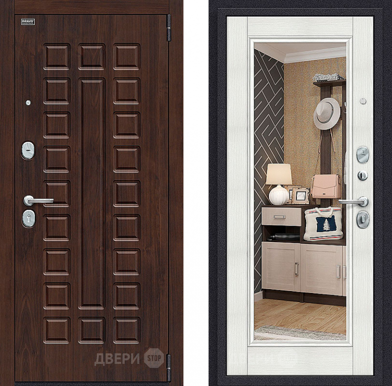 Дверь Bravo Оптим Урбан с зеркалом Bianco Veralinga в Ногинск 960х2050 мм