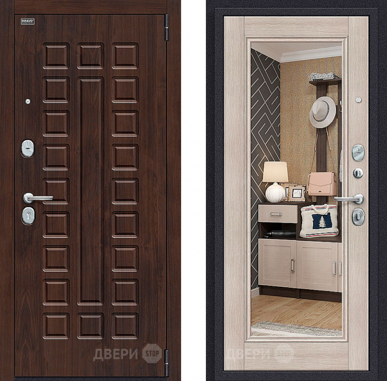Входная металлическая Дверь Bravo Оптим Урбан с зеркалом Cappuccino Veralinga в Ногинск 860х2050 мм