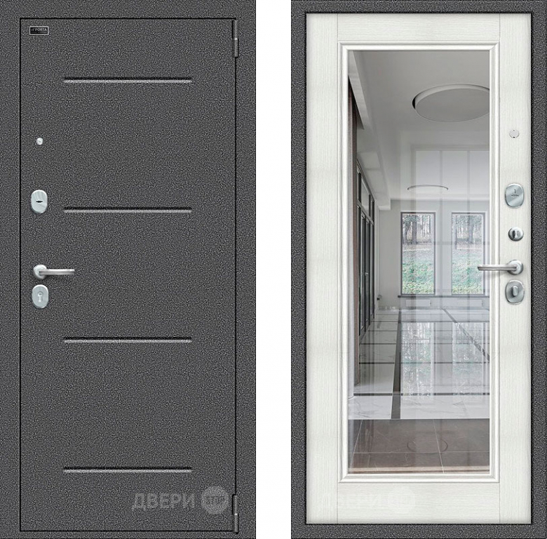Входная металлическая Дверь Bravo Porta S-2 104/П61 с зеркалом Бьянко в Ногинск 860х2050 мм
