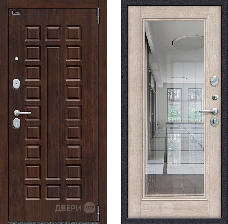 Входная металлическая Дверь Bravo Porta S-3 51/П61 с зеркалом Капучино в Ногинск 860х2050 мм
