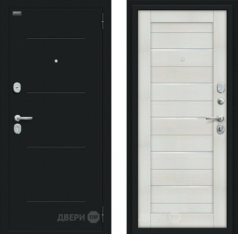 Входная металлическая Дверь Bravo Техно Kale Букле черное/Bianco Veralinga в Ногинск 860х2050 мм
