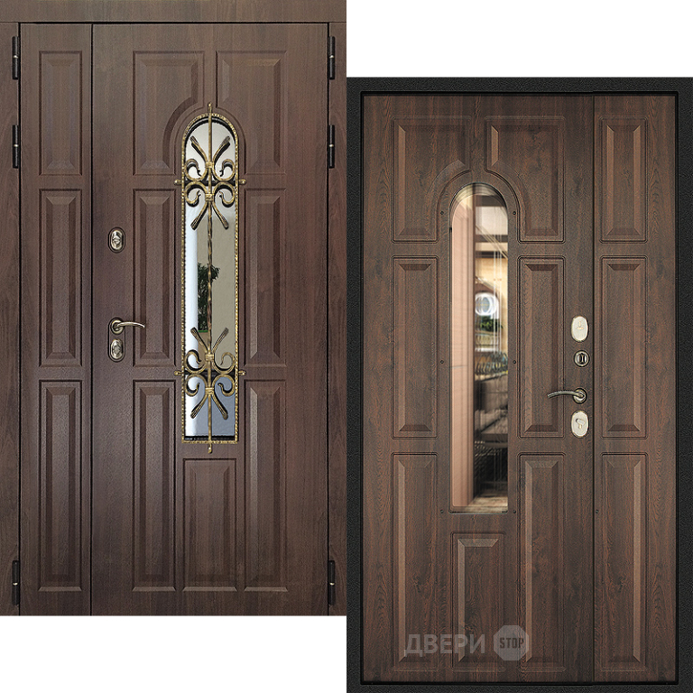 Входная металлическая Дверь Дверной Континент Лион Двустворчатая Темный орех в Ногинск 1100, 1200, 1300 * 2200мм