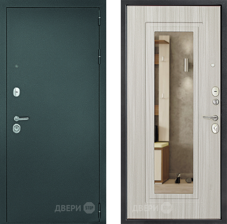 Входная металлическая Дверь Дверной Континент Рубикон Серебро Зеркало Сандал в Ногинск 860х2050 мм