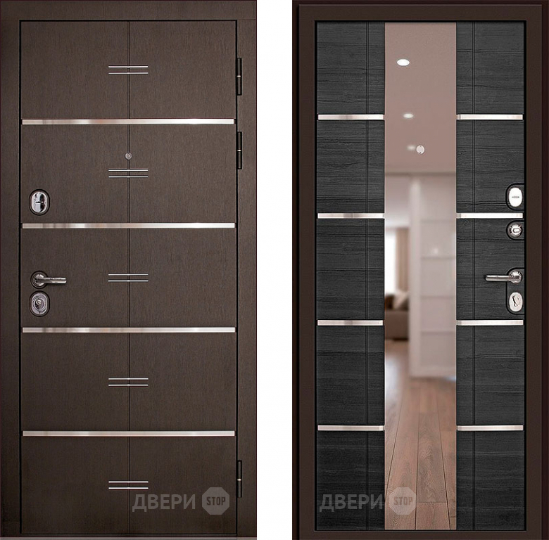 Входная металлическая Дверь (Дверной Континент) Савона с зеркалом Венге в Ногинск 860х2050 мм