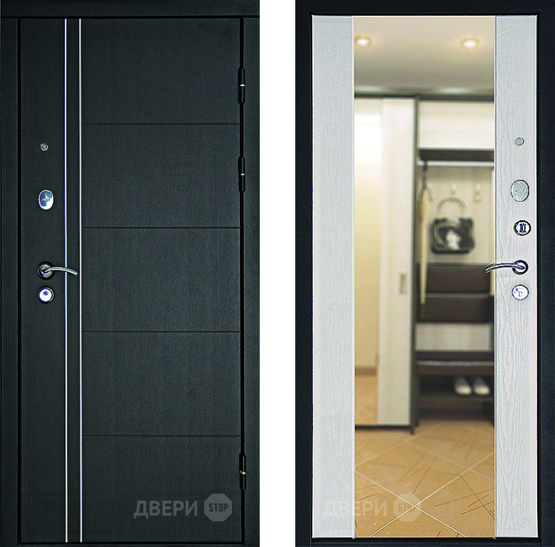 Входная металлическая Дверь Дверной Континент Тепло - Люкс Зеркало Беленый дуб в Ногинск 860х2050 мм