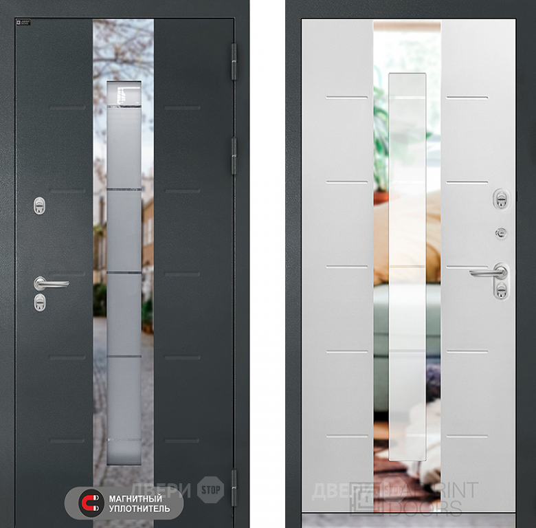Входная Дверь Лабиринт (LABIRINT) Атлантик термо Зеркало Максимум с тонировкой Черный кварц 860x2050 мм