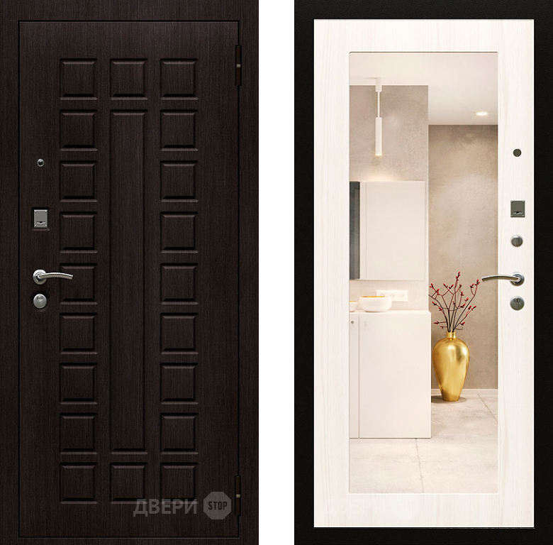 Входная металлическая Дверь Райтвер Сенат-лайф с зеркалом Беленый Дуб в Ногинск 860х2050 мм