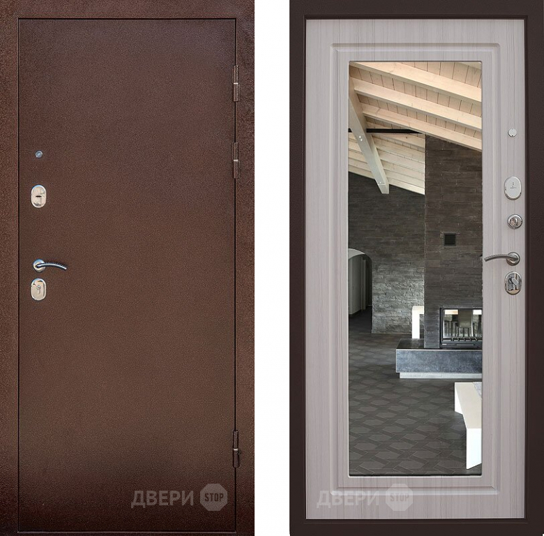 Входная металлическая Дверь Снедо Сити Эш Вайт с зеркалом в Ногинск 860х2050 мм