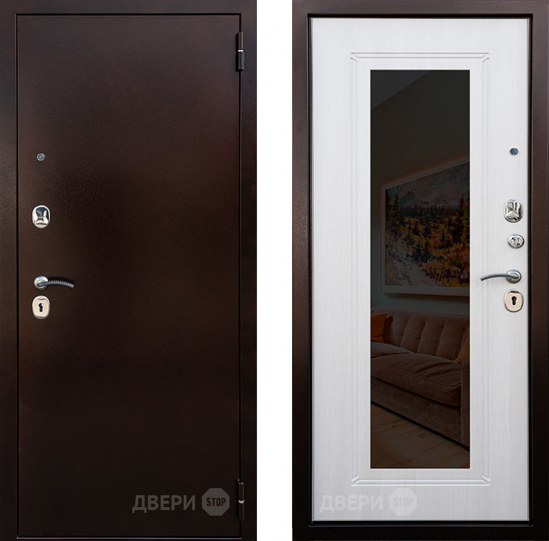 Входная металлическая Дверь Снедо Патриот зеркало Белая Лиственница в Ногинск 860х2050 мм