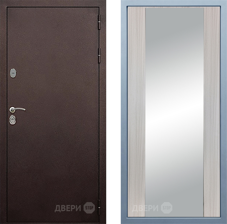 Входная Дверь Дива МД-40 Медь Д-15 Зеркало Сандал белый 860x2050 мм