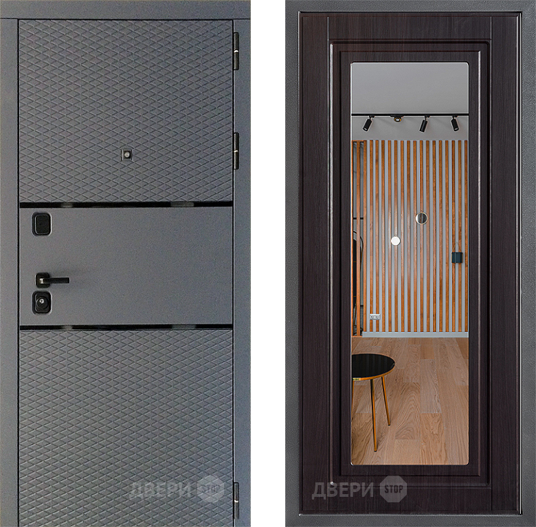 Входная Дверь Дверной континент Диамант Дизайн ФЛЗ Зеркало Венге 860x2050 мм