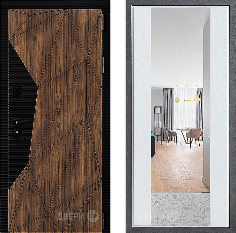 Входная Дверь Дверной континент ДК-11 ФЛЗ-1 Зеркало Белое дерево 960x2050 мм