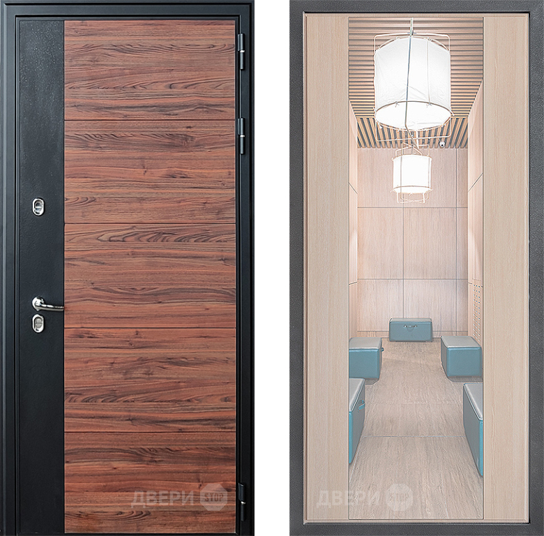 Входная Дверь Дверной континент ДК-15 Красное Дерево ТЕРМО ФЛЗ-1 Зеркало Капучино 860x2050 мм