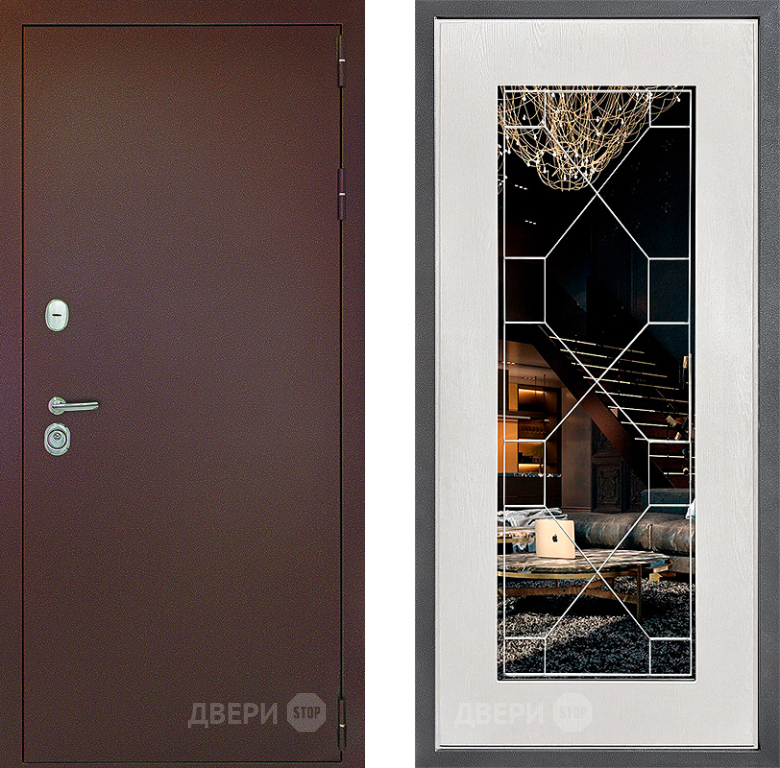 Входная Дверь Дверной континент Рубикон Медь Дизайн ФЛ-Тиффани Зеркало Белое дерево 960x2050 мм