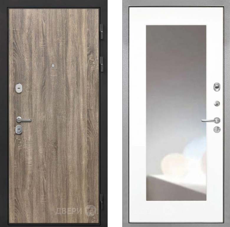 Входная Дверь Интекрон (INTECRON) Гектор Дуб Турин ФЛЗ-120-М Зеркало Белый матовый 960x2050 мм