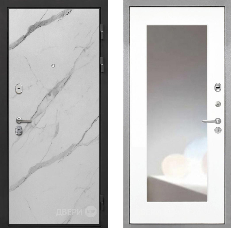 Входная Дверь Интекрон (INTECRON) Гектор Мрамор Арктик ФЛЗ-120-М Зеркало Белый матовый 960x2050 мм