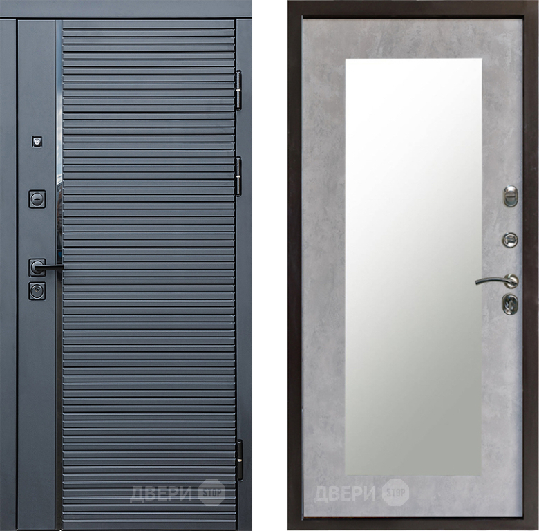 Входная Дверь Престиж Черная Линия Зеркло Пастораль Бетон светлый 860x2050 мм