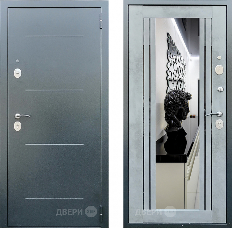 Входная металлическая Дверь Престиж Люкс с зеркалом Бетон в Ногинск 860х2050 мм