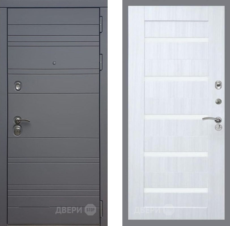 Входная Дверь Рекс (REX) 14 силк титан СБ-14 стекло белое Сандал белый 960x2050 мм