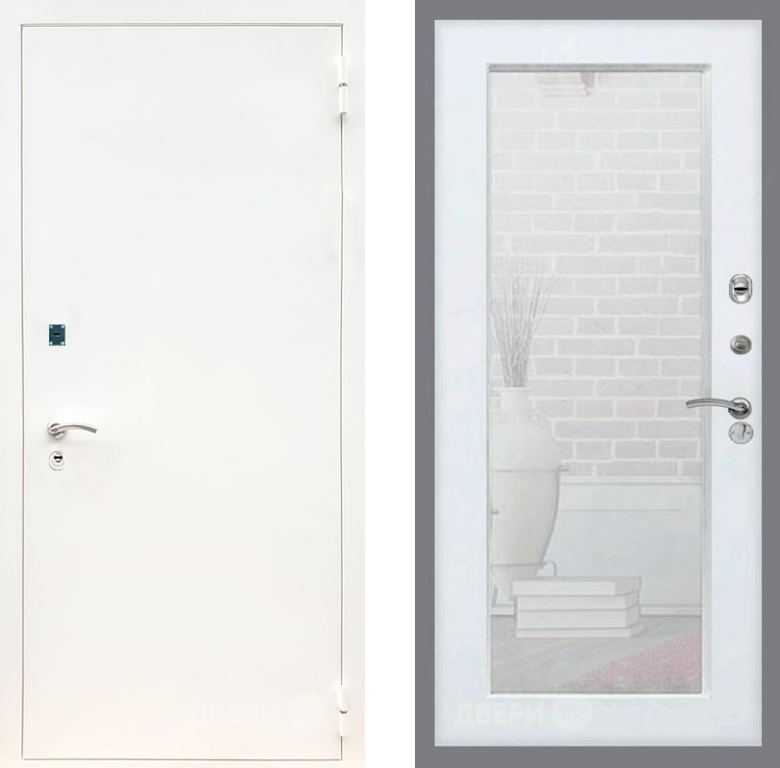 Входная Дверь Рекс (REX) 1А Белая шагрень Зеркало Пастораль Силк Сноу 860x2050 мм