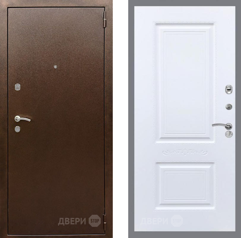 Входная Дверь Рекс (REX) 1А Медный Антик Смальта Силк Сноу 860x2050 мм