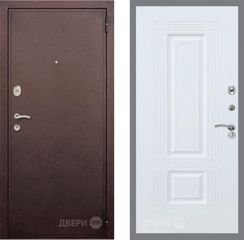 Входная Дверь Рекс (REX) 2 Медный Антик FL-2 Силк Сноу 860x2050 мм