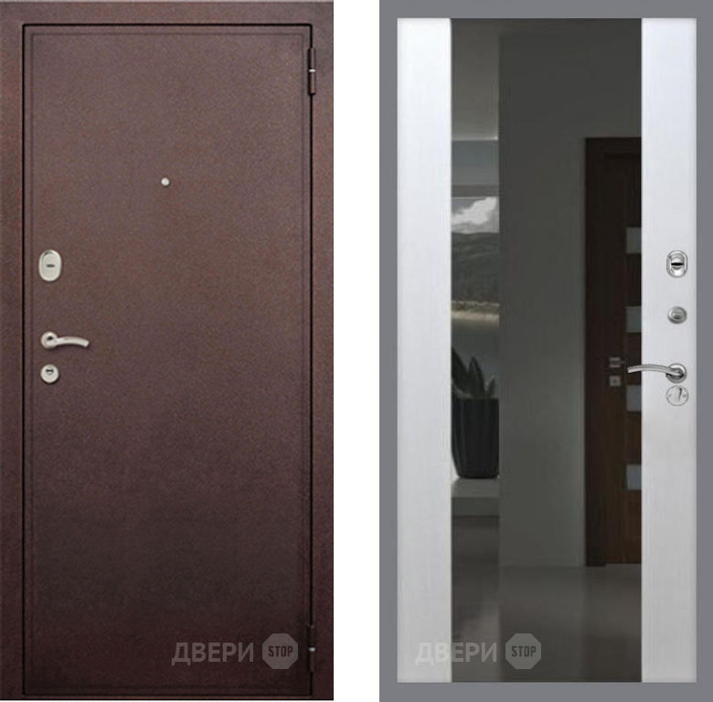 Входная Дверь Рекс (REX) 2 Медный Антик СБ-16 Зеркало Белый ясень 860x2050 мм
