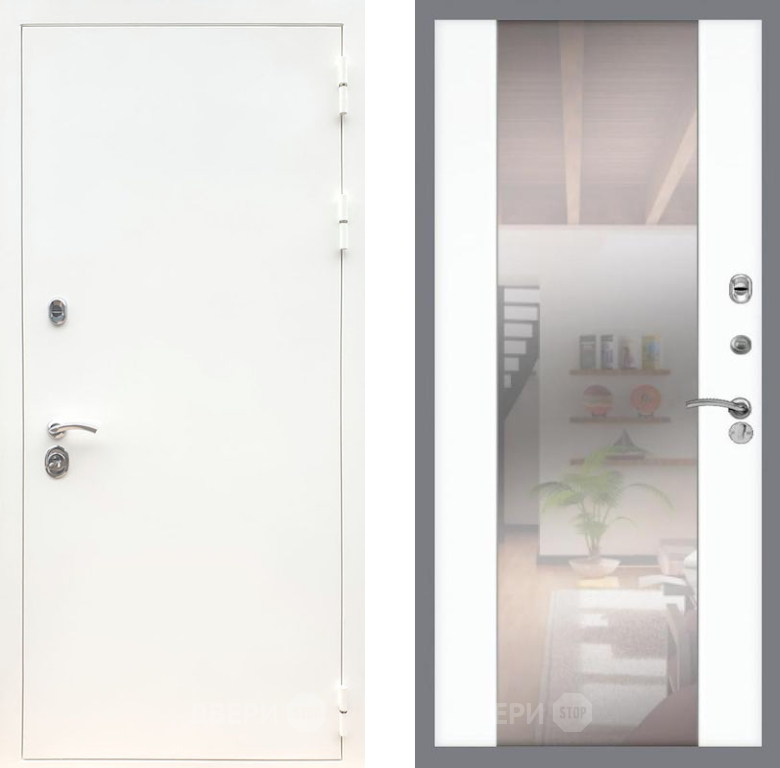Входная Дверь Рекс (REX) 5 Белая Шагрень СБ-16 Зеркало Силк Сноу 960x2050 мм