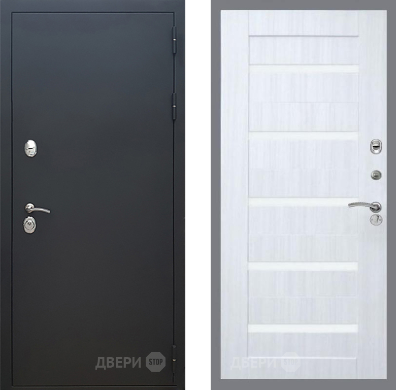 Входная Дверь Рекс (REX) 5 Черный Муар СБ-14 стекло белое Сандал белый 960x2050 мм