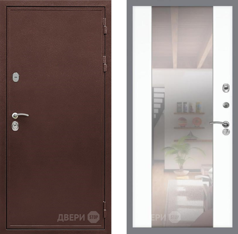 Входная Дверь Рекс (REX) 5 металл 3 мм СБ-16 Зеркало Силк Сноу 860x2050 мм