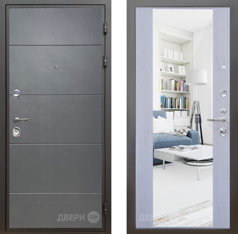 Входная Дверь Шелтер (SHELTER) Комфорт Лофт графит 12 с зеркалом Дуб филадельфия крем 860x2050 мм