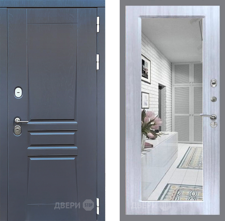 Входная Дверь Стоп ПЛАТИНУМ Зеркало Сандал белый 960x2050 мм