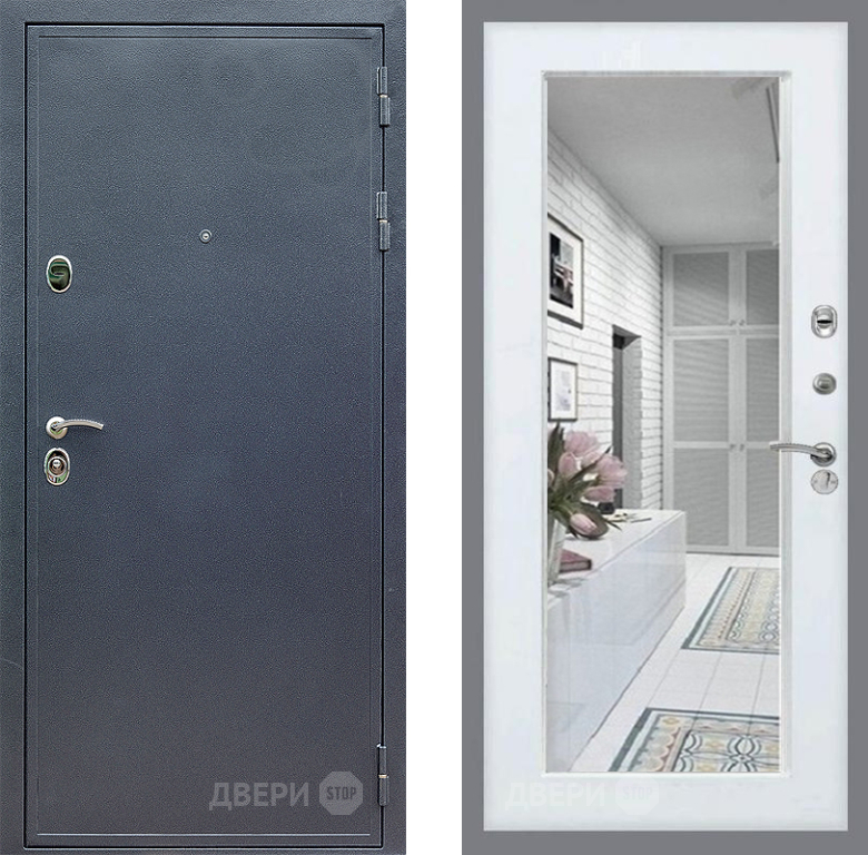 Входная Дверь Стоп СИЛЬВЕР Зеркало Белый ясень 960x2050 мм