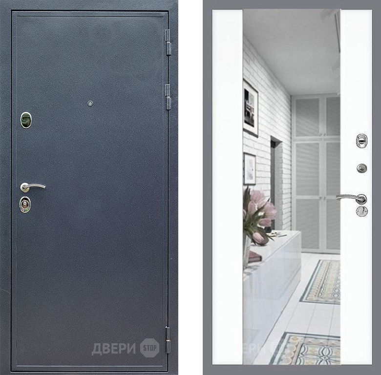 Входная Дверь Стоп СИЛЬВЕР Зеркало СБ-16 Силк Сноу 960x2050 мм