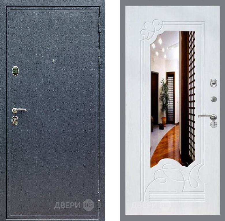 Входная Дверь Стоп СИЛЬВЕР ЗкркалоФЛ-147 Ясень белый 860x2050 мм