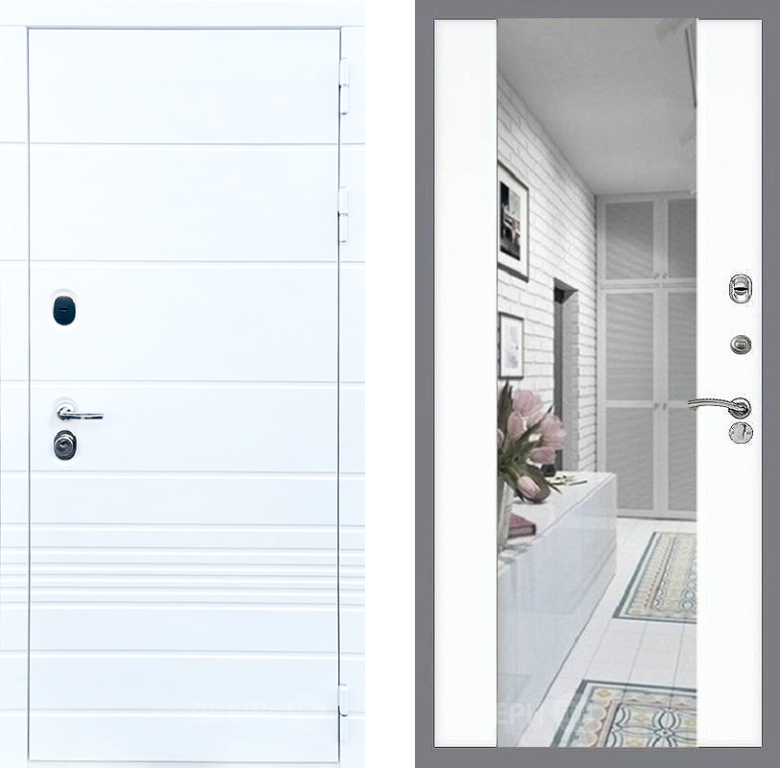 Входная Дверь Стоп ТРЕНДО Зеркало СБ-16 Силк Сноу 860x2050 мм