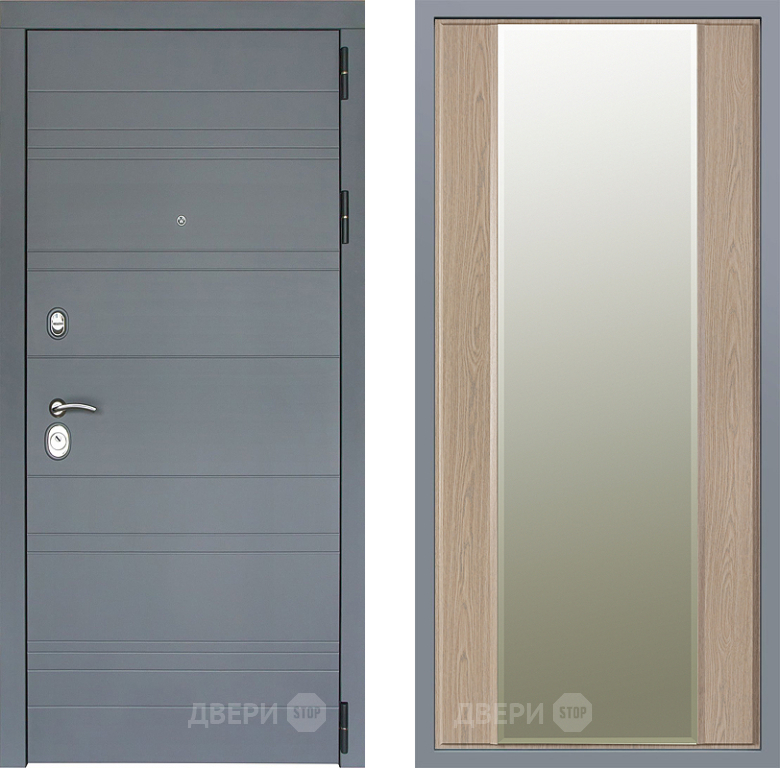 Входная Дверь Заводские двери Лира Софт графит Зеркало Макси Беленый дуб 960x2050 мм