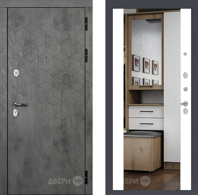 Входная металлическая Райтвер Бетон 1501 с зеркалом Белый матовый в Ногинск 860х2050 мм