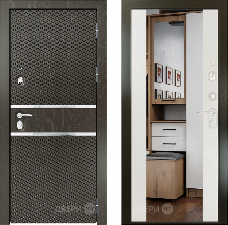 Входная металлическая Райтвер Плаза Шоколад с зеркалом Белый матовый в Ногинск 860х2050 мм